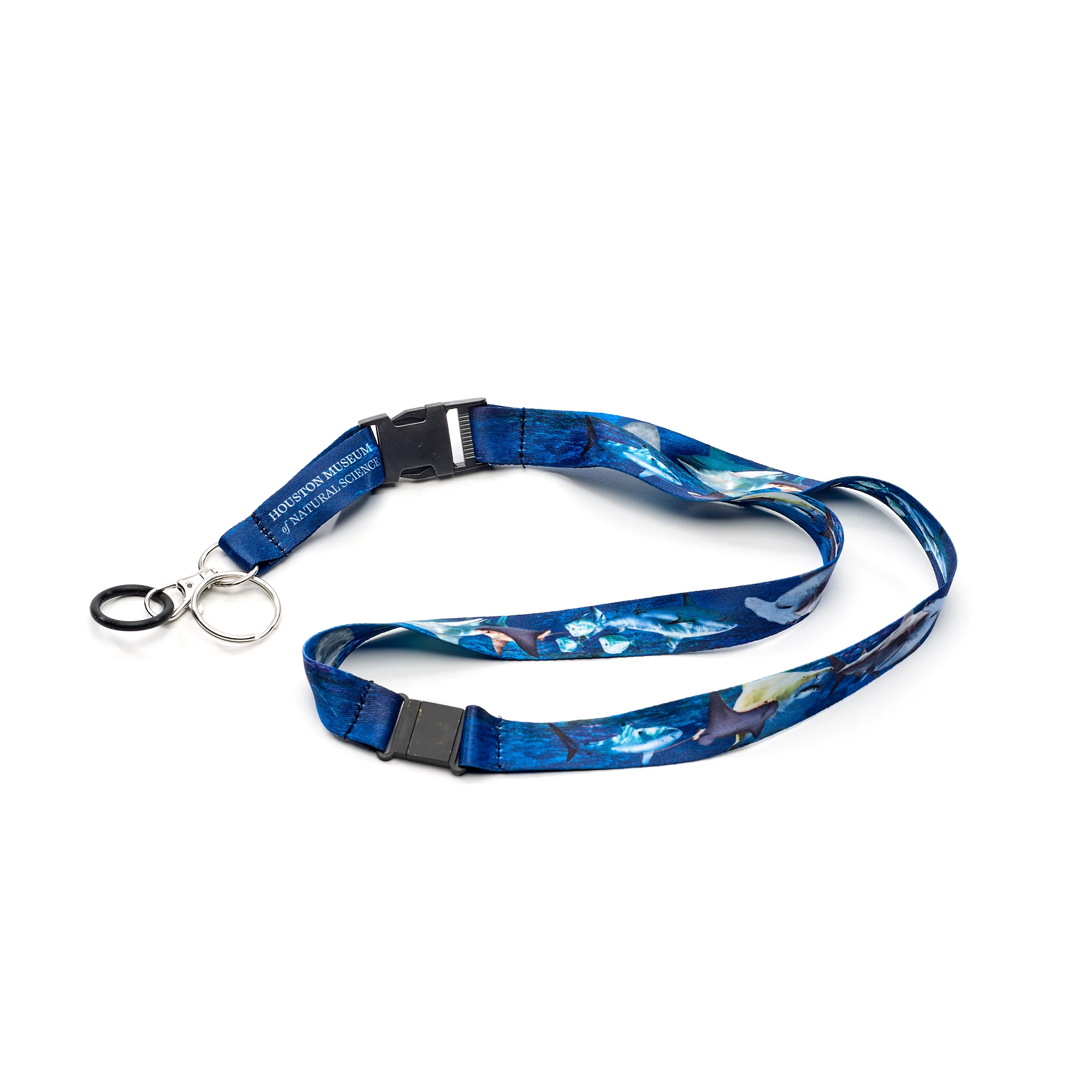 Sport your love for HMNS everywhere and with style with this HMNS Sharks! Lanyard! Featuring a cool blue pattern inspired by the ocean and complete with the museum's logo, you'll be stylishly swaggering around school or work. Plus, the soft fabric will keep your neck comfy while always showcasing your excitement for all things shark-related!
